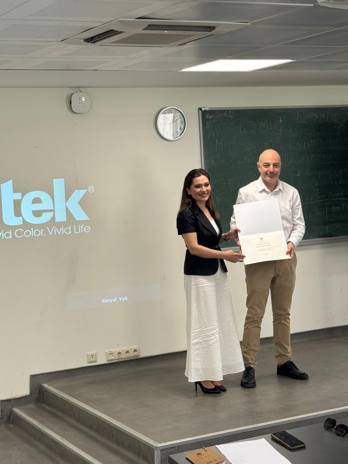 Program sonunda, katkılarından dolayı Doç. Dr. Murat Gülmez’e, Bölüm Başkanımız ve Fakültemiz Dekan Yardımcısı Doç. Dr. Özlem İPEK tarafından teşekkür belgesi takdim edildi.