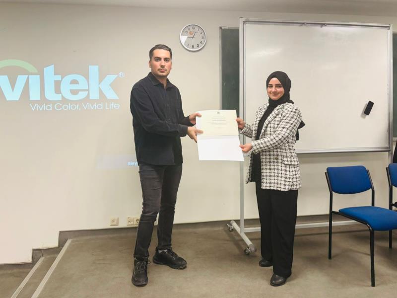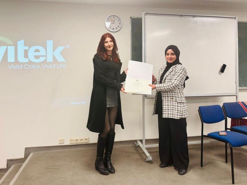 Program sonunda öğrencilerimize teşekkür belgeleri takdim edilmiştir. Erasmus deneyimlerini paylaşarak arkadaşlarına ilham olan Osman Tütüncüoğlu ve Gökçe Şimşek’e katkılarından dolayı teşekkür ederiz.