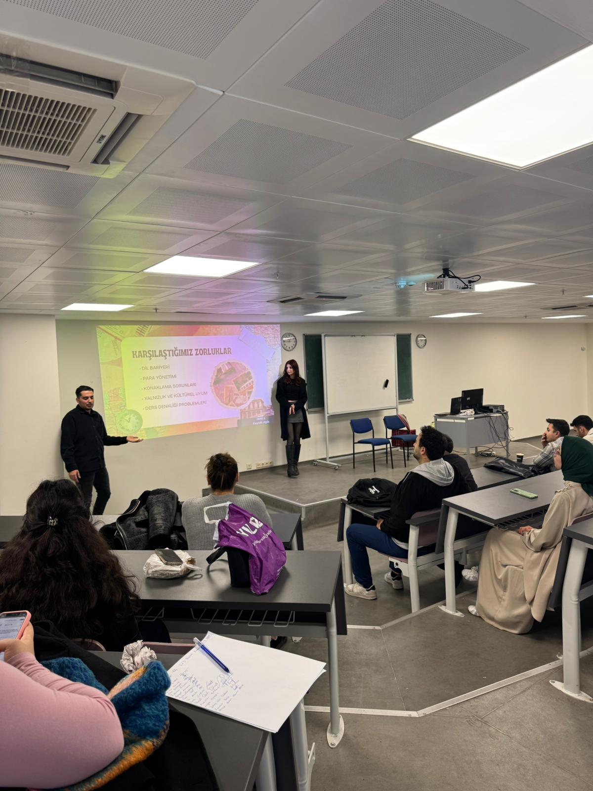 Avrupa’da eğitim almanın sunduğu fırsatlar, uluslararası etkileşim, kişisel gelişim ve yeni bir kültüre uyum süreci üzerine yapılan paylaşımlar, katılımcılar tarafından ilgiyle takip edilmiştir. Etkinliğimize yalnızca bölüm öğrencilerimiz değil, farklı bölümlerden gelen öğrenciler de yoğun ilgi göstermiştir.