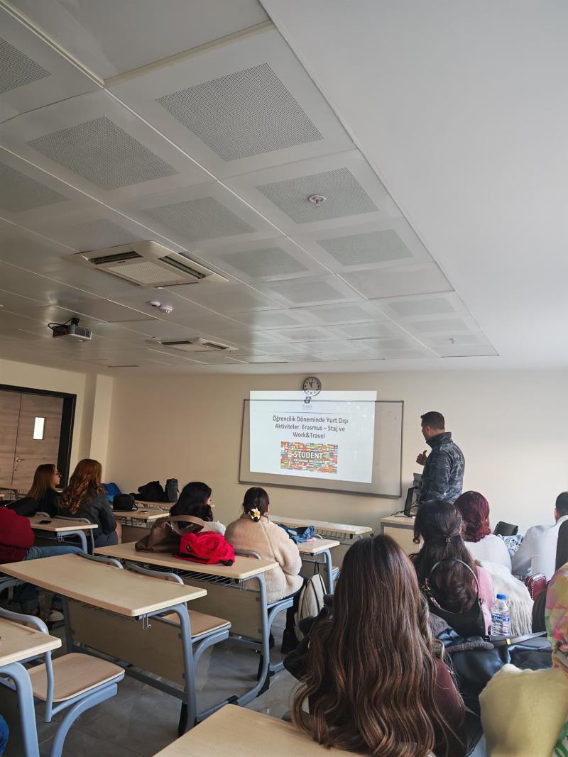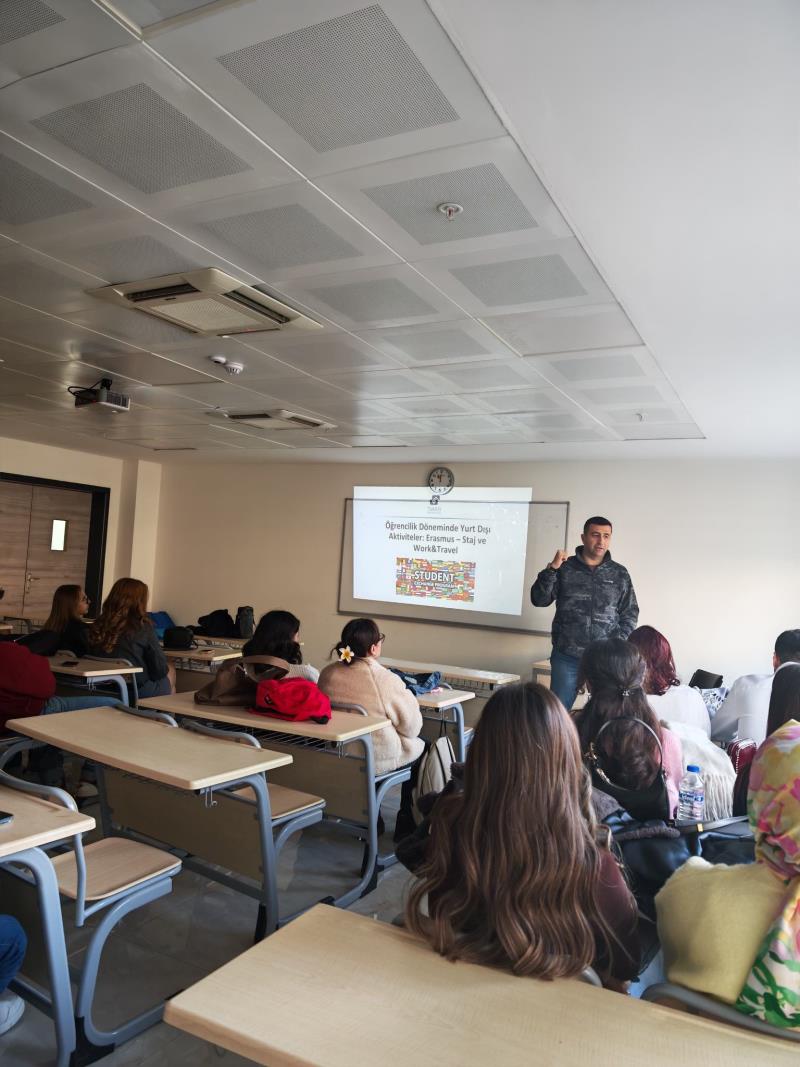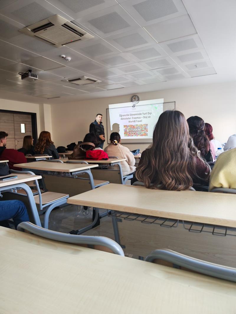 Seminer kapsamında, öğrencilerin lisans öğrenimleri süresince yararlanabilecekleri Erasmus değişim programları, yurt dışı staj olanakları ve Work & Travel programları ele alındı.